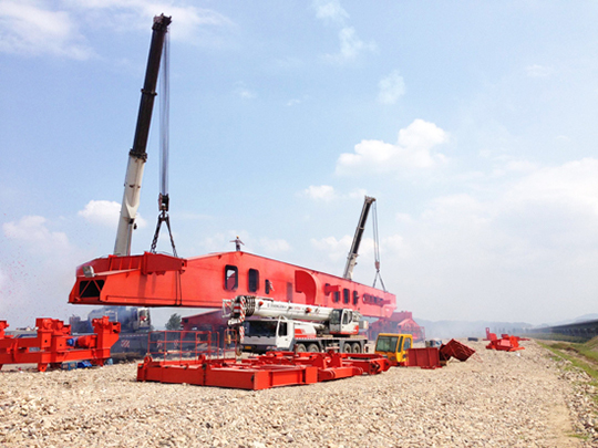 公司主要設(shè)備有:SLJ900T流動式運(yùn)架一體機(jī)、SXJ900T/32M分體式架橋機(jī)及運(yùn)梁車、MG450T提梁機(jī)(跨度有35M~40M,起升凈高20~40M)、ME900T提梁機(jī)、SXJ550T/32M一跨式架橋機(jī)及運(yùn)梁車、SGTJ180T鋪架機(jī)等高鐵運(yùn)架設(shè)備。